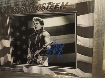 First i've had in years, a Bruce Springsteen hand signed 11 x 14 inch [large] photo, signed at The Stock Exchange Hotel in Manchester [owned by Gary Neville] back in May 2025. Nicknamed The Boss, the singer, songwriter & musician as you know has has major sucesses mainly with his E Street band inc twenty one studio albums to date. Not a common signature and pretty sought-after. This stunning pice measures 20 x 24 ins in total.
