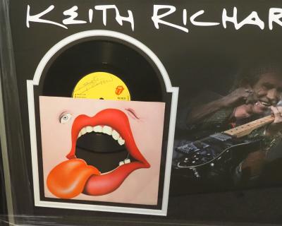 Superb item not often encountered, a single player record hand signed in biro by rock legend Keith Richards. Keith has been a member of The Rolling Stones since the beginning in 1962. As well as guitarist Keith in also the co-principal songwriter alongside Mick Jagger of one of the most influential rock bands of the 20th century. The single is superbly presented with an exclusive design to a size of 20 x 24 ins in total.