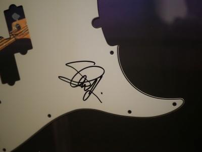 Stunning item a hand signed pickguard from Steve Harris leader of heavy metal band Iron Maiden. Steve is the bassist, keyboardist, backing vocalist, primary songwriter since the bands inception in 1975. He has also been cited as one of the greatest heavy metal bass guitarists ever. This stunning piece measures a full 55 x 66 cms with the printed mount board & frame