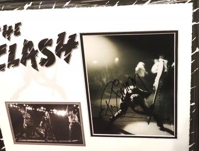 A superb & very iconic photo hand signed by The Clash bassist Paul Simonon. This superb 12 x 8 inch photo of Paul smashing his guitar on stage at the New York’s Palladium in 1979 is one of rocks most iconic photographs and the guitar incidentaly is on display at the Museum of London. Paul met Mick Jones and formed the clash in 1976 along with Joe Stummer 7 had such hits as "Rock the Casbah" & "The Guns of Brixton". This piece with printed mount board measures an impressive 20 x 24 ins in total.