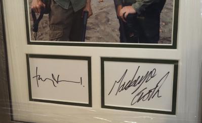 Two signatures on white cards from BBCs gentle and much loved comedy series, The Detectorist, signed by Mackenzie Crook, Toby Jones, Nice display which includes an added 12 x 8 colour photo of the comedy duo doing what they do best. Professionally framed and mounted as all my products are.